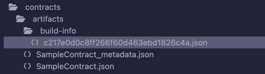 File Explorers plugin as:artifacts/<contractName>.json: contains the link to the libraries, the bytecode, the deployed bytecode, the gas estimation, the method identifiers, and the ABI. It is used for linking a library address to the file.artifacts/<contractName_metadata>.json: contains the metadata from the output of Solidity compilation.artifacts/build-info/<dynamic_hash>.json: contains info aboutsolccompiler version, compiler input and output. This file is generated similar to the files generated through Hardhat compilation. You can also try Hardhat compilation from Remix.