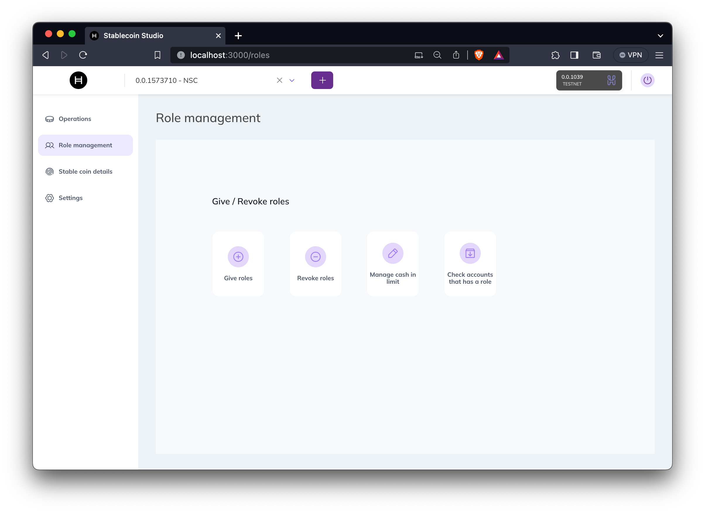 The Stablecoin Studio Web User Interface (Web UI) is designed to provide a more intuitive and user-friendly experience for managing stablecoins. Developed using React, this interface offers a visual representation of all our Web UI capabilities, from initial setup to advanced administration. Whether you’re a newcomer looking for an easier entry point or a seasoned developer seeking a more efficient way to manage stablecoins, this documentation offers the insights and resources to harness the full power of our React-based Web UI.
